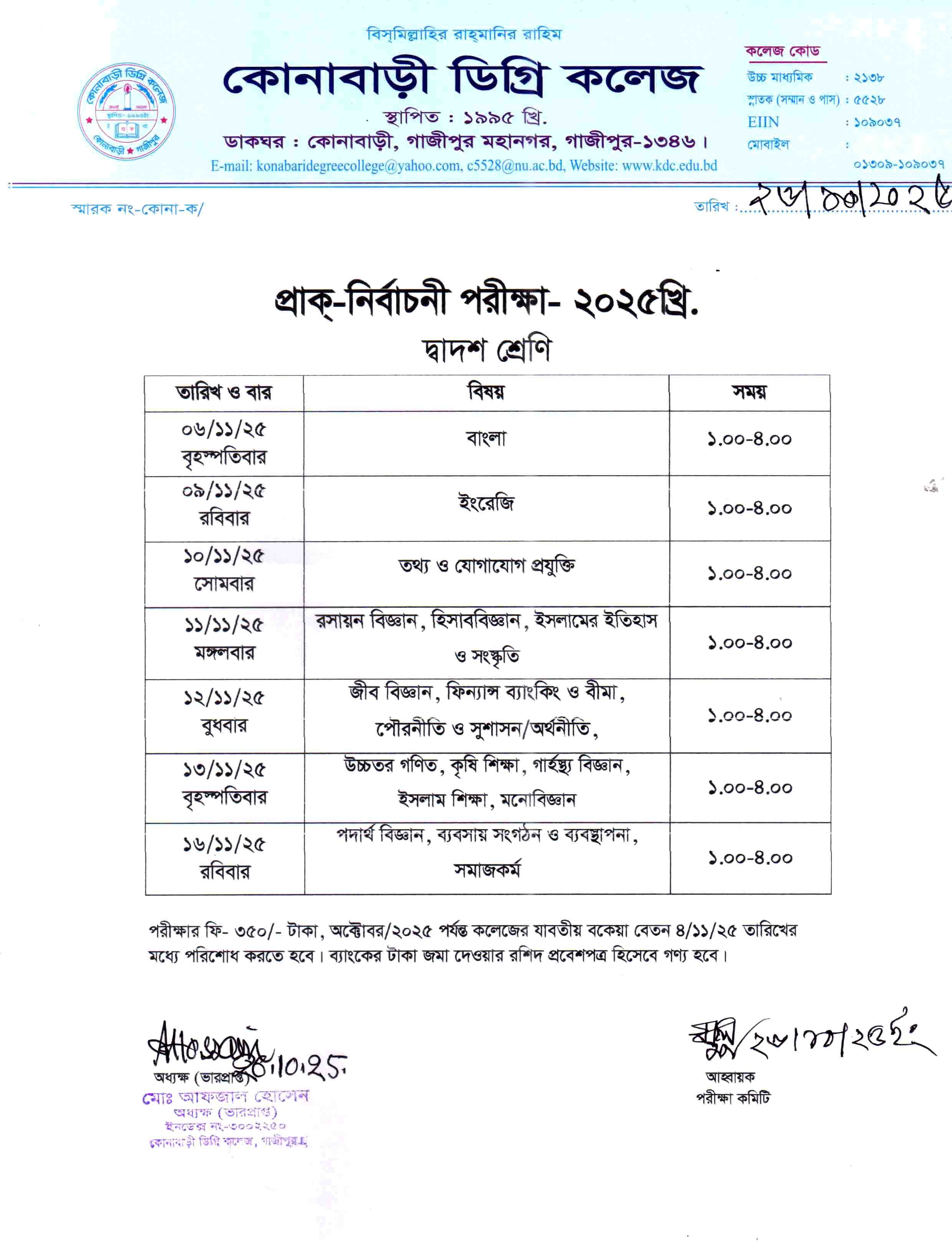 কোনাবাড়ী ডিগ্রি কলেজ, ডাকঘর:কোনাবাড়ী, গাজীপুর মহানগর, গাজীপুর-১৩৪৬