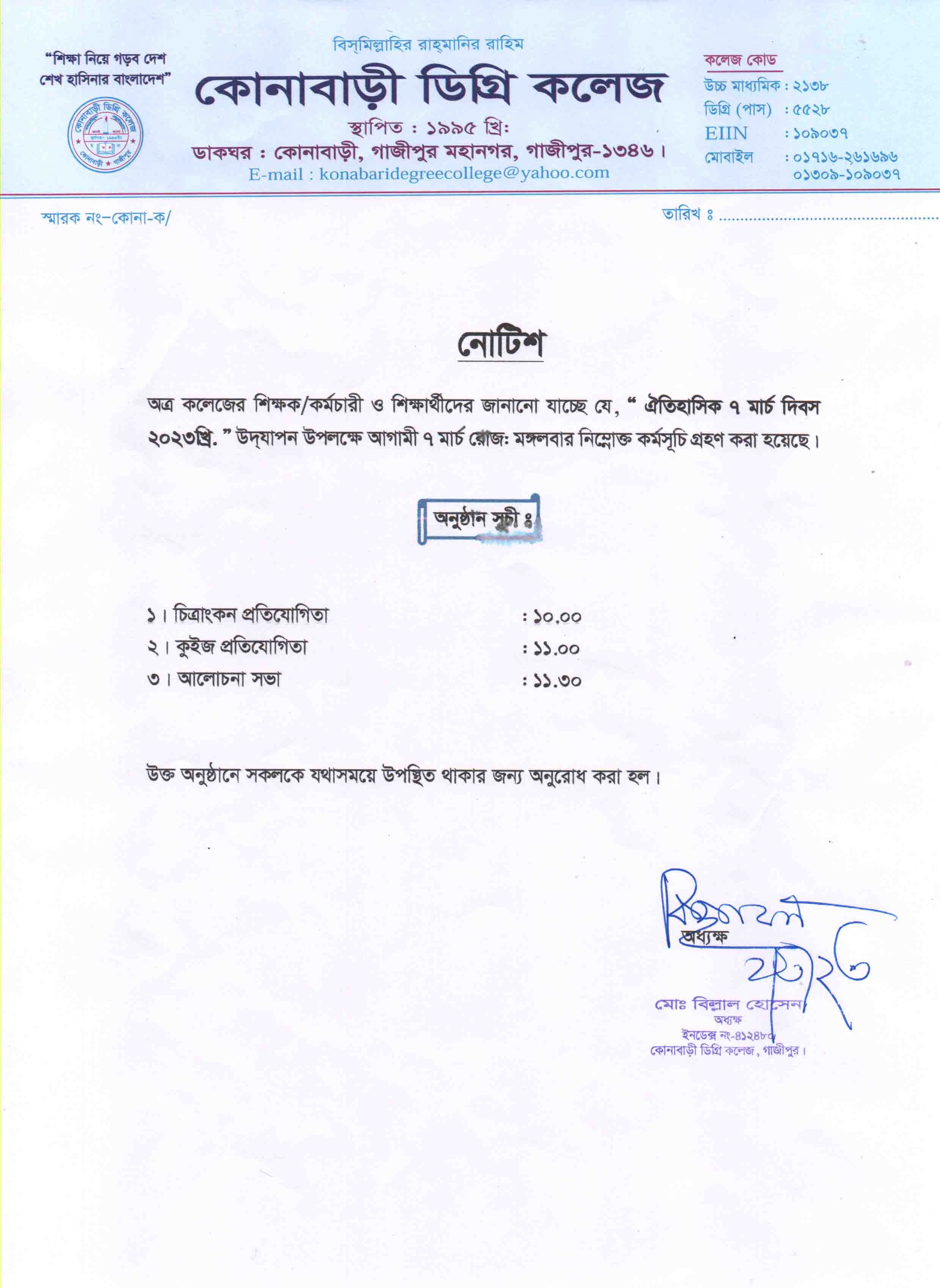 Copyright @ কোনাবাড়ী ডিগ্রি কলেজ, ডাকঘর:কোনাবাড়ী, গাজীপুর মহানগর, গাজীপুর-১৩৪৬