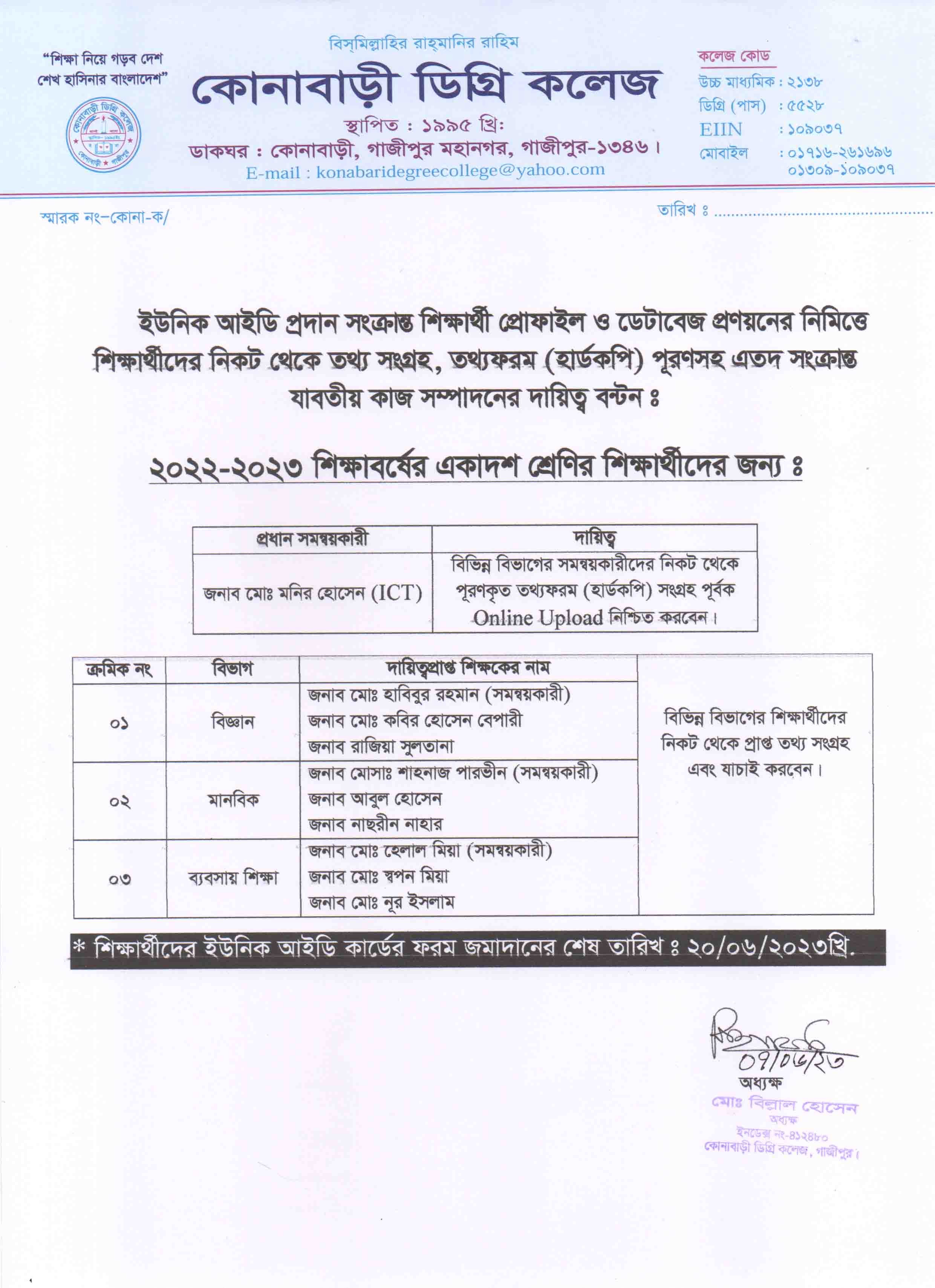 Copyright @ কোনাবাড়ী ডিগ্রি কলেজ, ডাকঘর:কোনাবাড়ী, গাজীপুর মহানগর, গাজীপুর-১৩৪৬