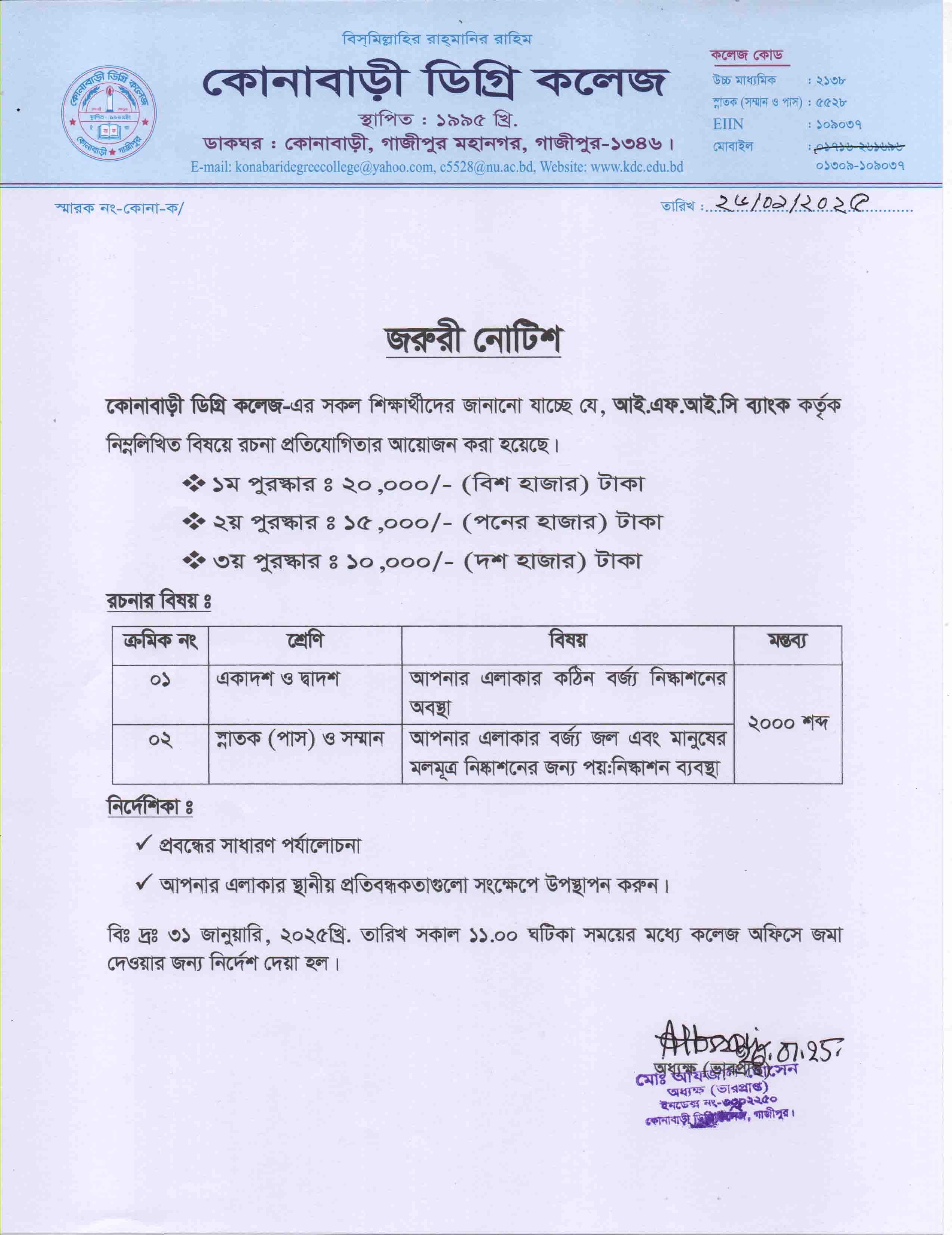 Copyright @ কোনাবাড়ী ডিগ্রি কলেজ, ডাকঘর:কোনাবাড়ী, গাজীপুর মহানগর, গাজীপুর-১৩৪৬