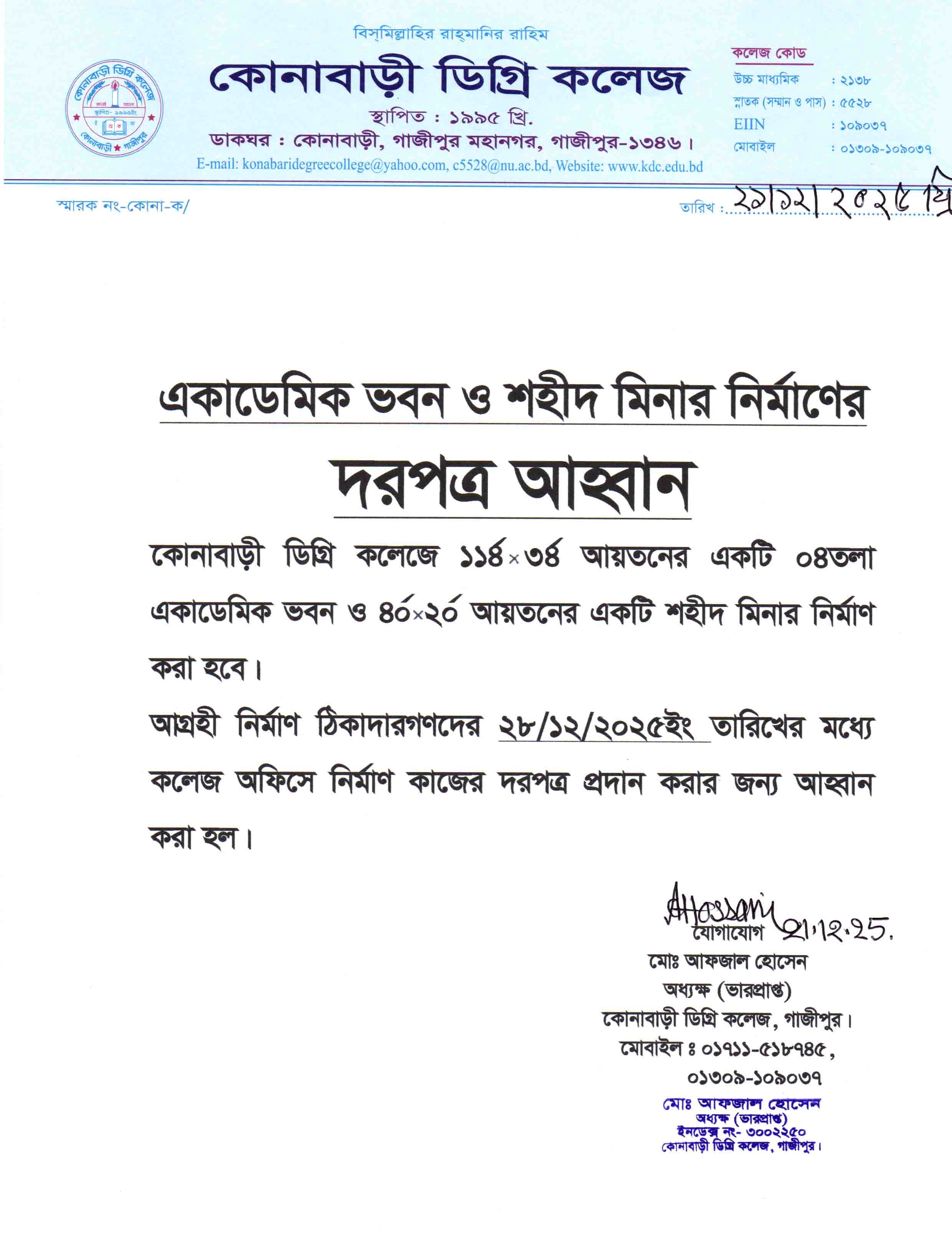 Copyright @ কোনাবাড়ী ডিগ্রি কলেজ, ডাকঘর:কোনাবাড়ী, গাজীপুর মহানগর, গাজীপুর-১৩৪৬